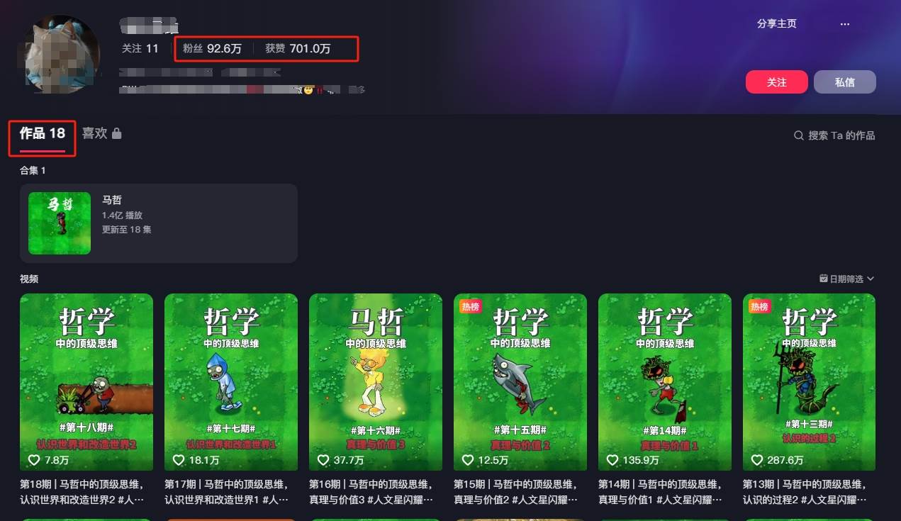 短视频混剪哲学号,小众赛道大爆款18个作品,涨粉92.6万!