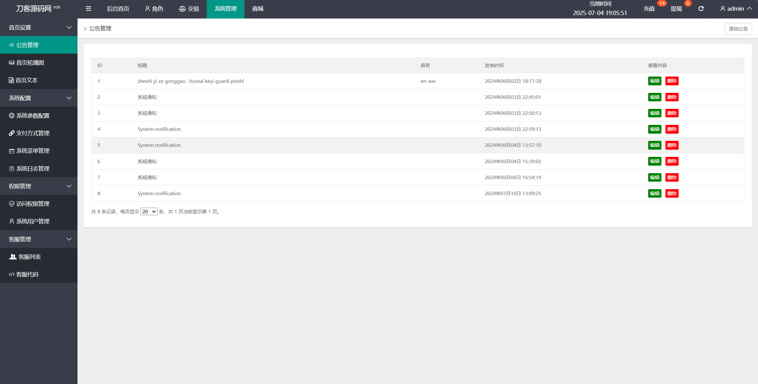 多语言好像有一些地方没有改到,自己可以去处理一下,多语言文件在 application/lang 下面